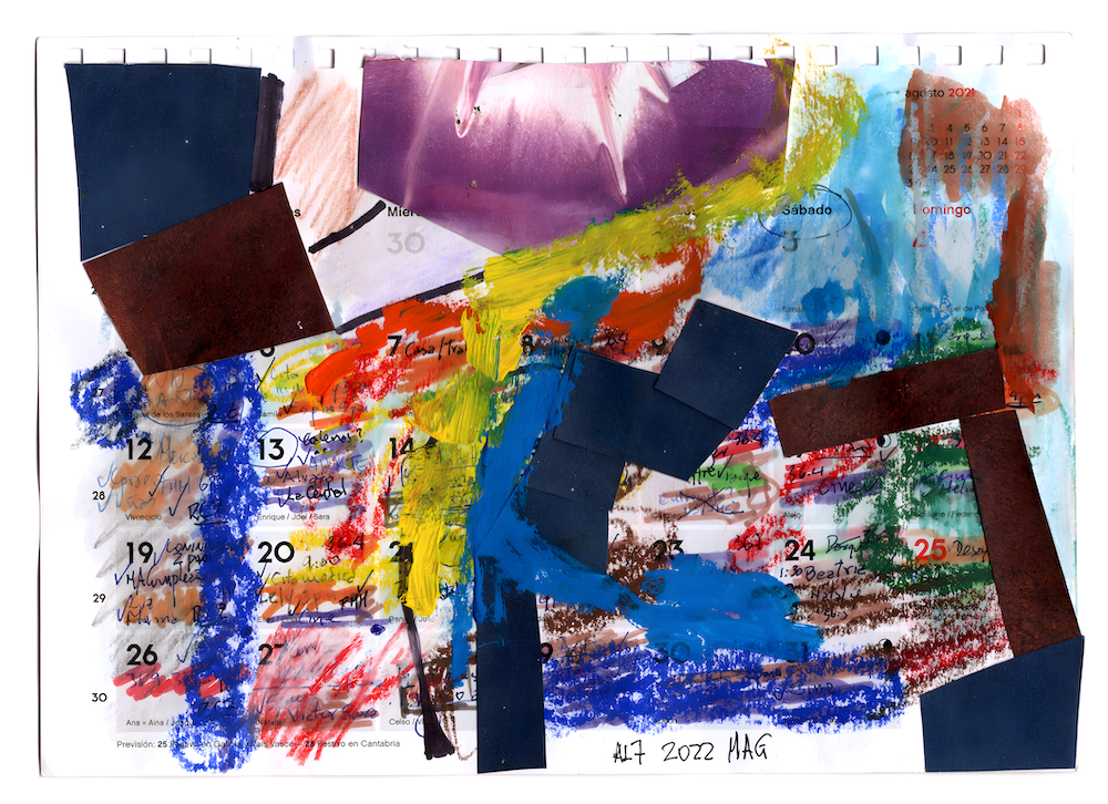 The centrality of the grid—found in calendars and urban landscapes—acts as a framework for understanding the passage of time. However, Génova’s focus is not on order but on the fluid and ever-changing nature of our temporal and spatial realities. His art acts as a visual diary, reconstructing ordinary moments that often go unnoticed. He eloquently captures this sentiment in his poetry: “Life only makes sense in the breaking and remaking.” Through his work, he reminds us that the extraordinary can be found within the mundane.