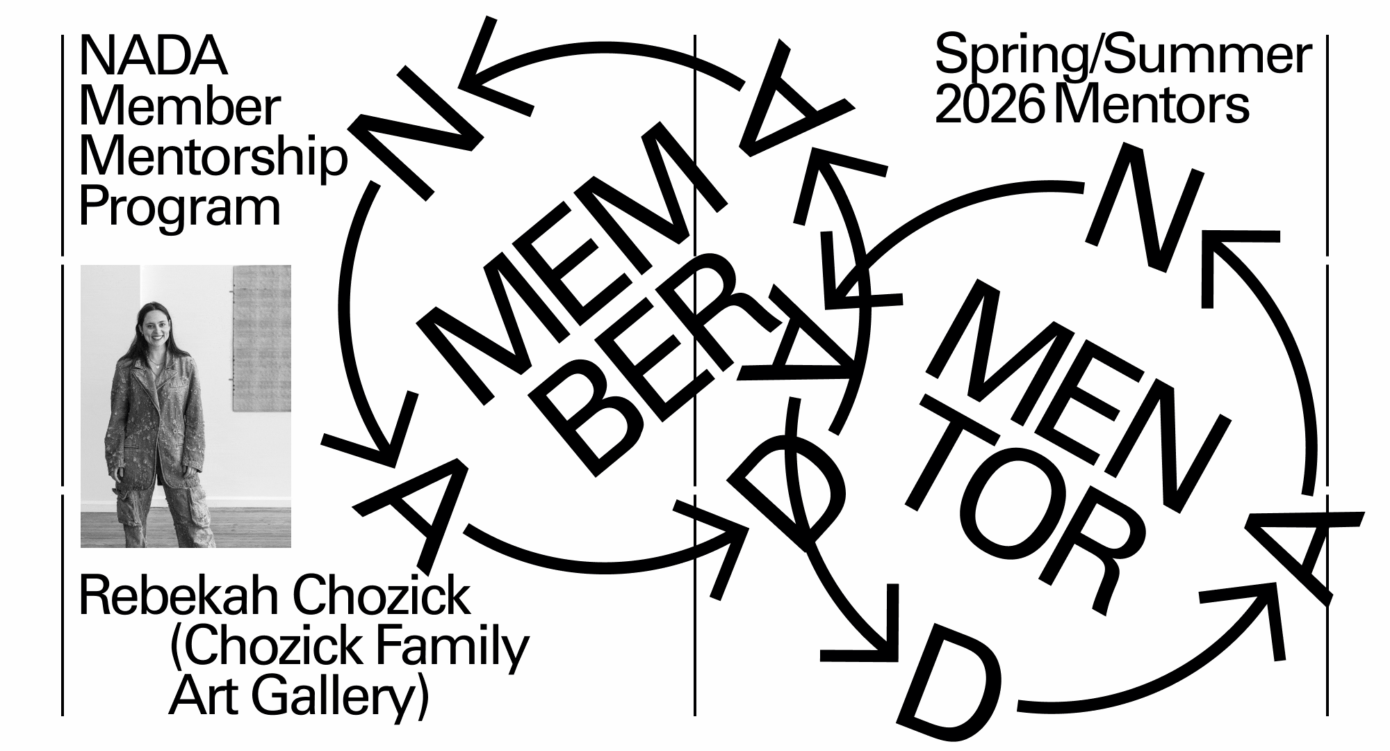 The New Art Dealers Alliance (NADA) is pleased to announce the third iteration of the NADA Member Mentorship Program, a self-directed, member-driven initiative fostering meaningful professional connections across the organization’s international network. The program will take place Spring/Summer 2026 with 16 mentors from NADA’s membership base.