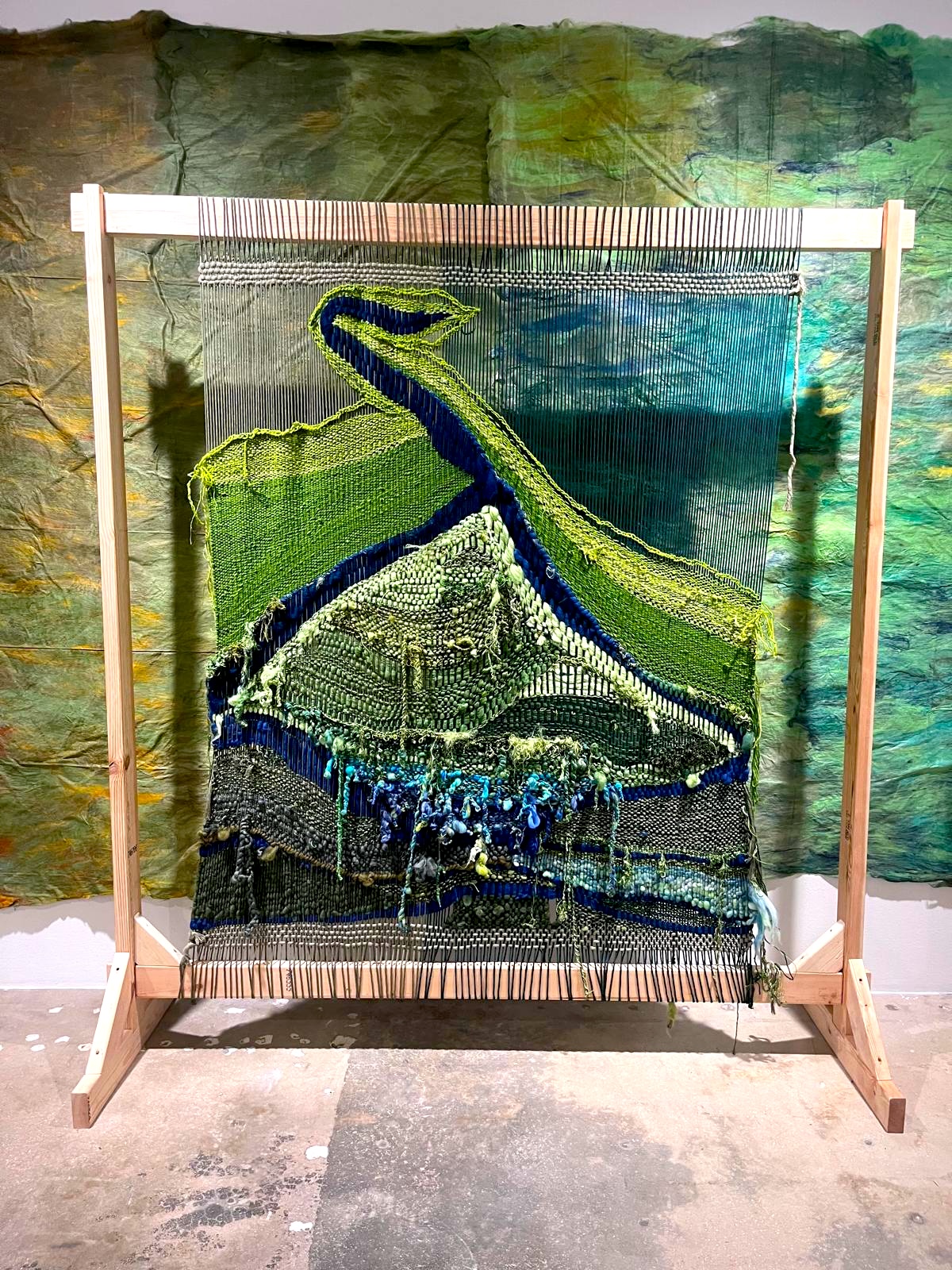 The custom-built looms—6-foot squares—become both structure and artwork, creating woven corridors that you walk through. There’s a strong sense of place and materiality, with each piece contributing to a larger ecological and cultural narrative.