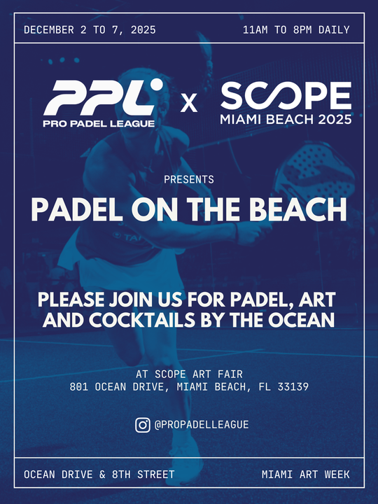 Following epic matches in NYC and the Hamptons, The Pro Padel League (PPL) – www.propadelleague.com, North America’s first professional padel league, arrives in Miami for an unprecedented collaboration on-site at the SCOPE Art Show, bringing the world’s fastest-growing sport to the sunny sands of South Beach during Miami Art Week 2025. Positioned at the front entrance of SCOPE’s iconic oceanfront pavilion, the Pro Padel League Court will host a full slate of exhibition matches, panels, and lifestyle experiences that merge sport, celebrities and contemporary art in a way only Miami can. The event promises to bring an immersive weeklong experience at one of the world’s most celebrated art fairs.