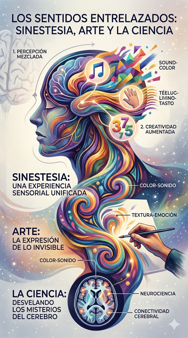 No es un trastorno, sino un rasgo neurológico —como el oído perfecto— que crea acoplamientos sensoriales vívidos. Un sinestésico podría escuchar una voz y al mismo tiempo verla como un color o una forma, saborear su distintivo matiz, o sentirla como un toque físico. MIT Press