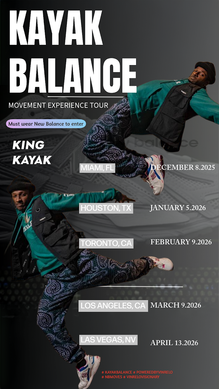 Miami, FL — The vibrant city of Miami will host The Kayak Balance Movement Experience Tour, an immersive performance and wellness-driven dance experience led by internationally acclaimed artist, dancer, choreographer, and performer Wendell “King Kayak” Bullen. Powered by Vinrelo, the event brings together movement, music, mindfulness, and creative expression in a transformative experience designed for participants of all ages and backgrounds.